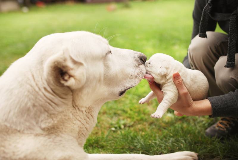 Новорожденные щенки в течение первого месяца жизни питаются только материнским молоком. Если его мало, малышей выкармливают специальной смесью для щенков или козьим молоком.