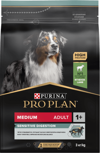 MEDIUM ADULT – для взрослых собак средних пород, SENSITIVE DIGESTION – при чувствительном пищеварении.
